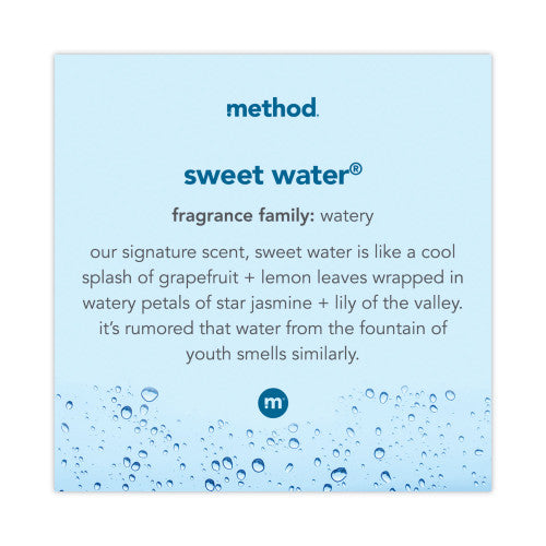 Keep your Method® gel hand soap dispensers full with this eco-conscious Sweetwater-scented refill pack. Each 34 oz refill tub contains enough plant-based formula to refill your pump 2.8 times, reducing plastic waste by 35% compared to buying new bottles. The cruelty-free, paraben-free formula cleans effectively while leaving hands soft and lightly fragranced.