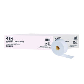 GEN Jumbo Roll Toilet Paper - 2-Ply, 525 Feet per Roll, 12 Rolls/Case - Commercial Bath Tissue for High-Capacity Dispensers